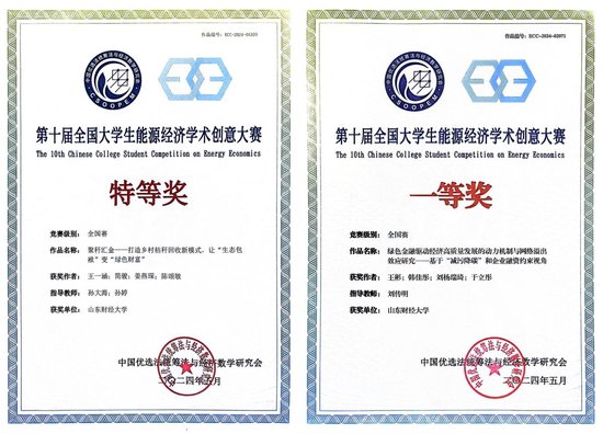 5月18-19日,第十届全国大学生能源经济学术创意大赛在中国地质大学(北京)举行。山东财经大学获得全国特等奖1项、一等奖1项并获得优秀组织奖。这是山东财经大学首次在该项竞赛中获得全国特等奖和一等奖,实现了在该项竞赛中的重大突破。
