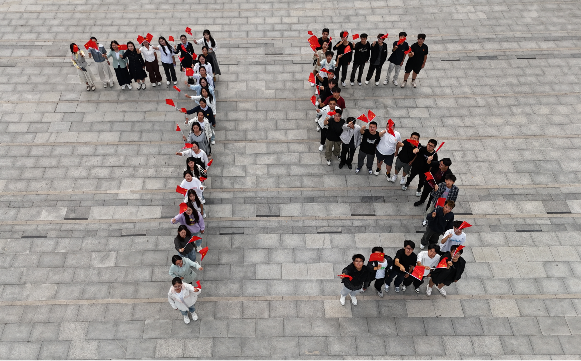 随后,在学生理论宣讲团成员的带领下,全体同学在第七十五个国庆日前夕,郑重立下誓言:请党放心,强国有我;克明峻德,格物致知,努力成长为一名有家国情怀,可堪大用、能担重任的时代新人,在强国建设、民族复兴伟业中勇立潮头,挺膺担当!宣誓后,参与活动的师生手举国旗排成“75”字样合照,共同庆祝新中国75周年华诞。