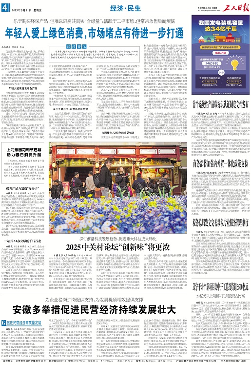 山东财经大学金融学院执行院长王营表示,目前,绿色消费领域存在制度管理体系尚不完善、消费信息不对称、产品溢价较高等问题,建议从加大政策支持、创新绿色产品、绿色信用共享等方面发力,进一步释放绿色消费潜力。