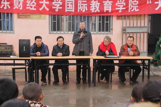 下午两点半,国际教育学院的老师和同学到达了济阳县回河镇赵家小学。济南市委组织部驻村扶贫“第一书记”王飞主持活动,回河镇镇长卢波、国际教育学院党委副书记高峰先后发言,激励在座的各位同学努力学习、并祝大家圣诞快乐。