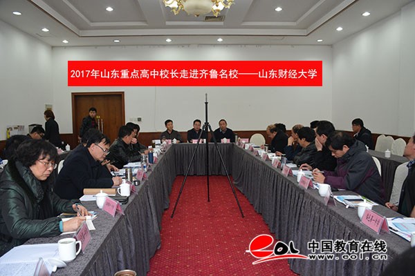 中国教育在线讯 “热烈欢迎诸位在这鸟语花香、春意盎然的时节莅临我校考察交流、传经送宝。”3月28日,2017年山东重点高中校长走进齐鲁名校活动继续展开。一行人来到了办学历史悠久、财经特色鲜明、综合实力备受社会认可的高等财经院校——山东财经大学。该校副校长聂培尧出席并讲话,教务处副处长兼招生办公室主任王燕主持,并对重点高中校长一行表示了热烈的欢迎。