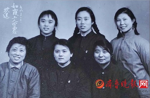 梁如霞(前排中),山东财经大学退休教授,1977年参加高考,之前为工厂女工。这是她在上学前和工友的合影留念。