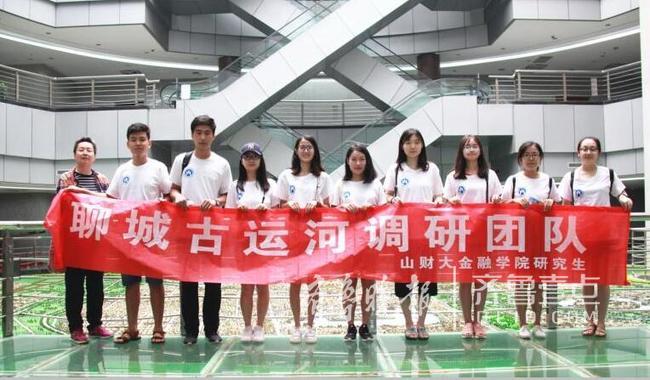按照山东财经大学三千计划社会实践的安排,“一条大河值多少钱”山东省大学生社会实践立项团队之一,山东财经大学金融学院研究生京杭大运河聊城段经济价值调研团队,在指导教师范志毅的带领下一行十一人,于7月26日到28日来聊城市进行了为期三天的调研活动。