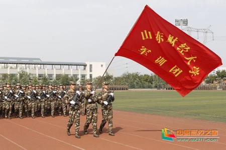 校党委书记王邵军宣布山东财经大学2017级新生开学典礼暨国防教育总结大会开始。在全体人员迎国旗,齐声高唱国歌、升国旗后,军训团进行了分列式及表演课目演练,海军手旗、擒敌拳、战术、木质警棍、捕俘刀、活字印刷、军体拳等不时博得阵阵掌声。