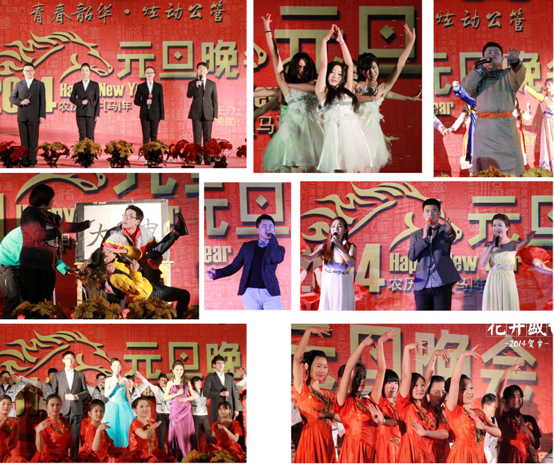 晚会在温婉华美的开场舞《花开盛世》中拉开序幕,公共管理学院院长张红凤致新年贺。晚会节目丰富多样、异彩纷呈。既有温文尔雅的器乐合奏《好一朵茉莉花》,又有动感火爆的爵士舞《眼泪簌簌》;不论是唯美动人的器乐歌伴舞《山楂树》、令人爆笑连连的小品《富二代的钱去哪了》,还是歌颂伟大祖国的诗朗诵《领航中国》与歌伴舞《美丽中国》,这些精彩的节目都体现了公管学生昂扬向上的青春风采和迎接新年的喜悦心情。现代舞、武术表演,特别是精彩的双截棍表演,聚集了全场观众期待的目光;激扬热情的男声独唱《离开地球表面》再次点燃全场气氛,台下掌声如潮;全场气氛在民族大联欢《中国范》下被推向高潮。晚会在一曲《爱因为在心中》中圆满落幕。