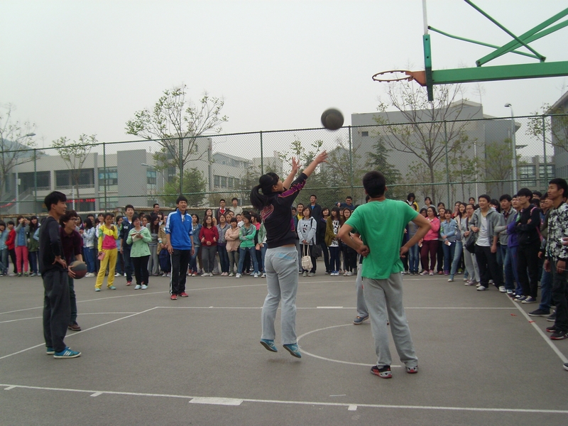趣味运动会共设置了“你是我的眼”、“人艰不拆”、“投篮之星”、“拔河”四个项目。“你是我的眼”项目,每班两名男生需各自背着1位女生越过障碍跑到终点,然后再折返到起点。13级精算二班配合默契,取得第一。“人艰不拆”项目考验的是团队协调能力,每班5男5女组成一队,相邻的人把腿系在一起,一起跑到终点并折返。比赛过程中,操场上处处洋溢着欢乐的气氛,12级保险一班步伐流畅,配合有度,以36秒的优异成绩获胜。“投篮之星”环节,各班女生篮下投篮和2分线处投篮比较顺利,3分线处用时较多。但最具挑战性的还属超远3分线投篮,只有12级保险三班和12级精算二班投中,赢得现场一片喝彩。在“拔河”项目中,每个参赛者都使出浑身力气,拉拉队更是加油声不断,大家齐心协力,为班级荣誉而战。