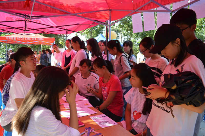 9月12日下午2时,新生入学教育活动系列之二——“学生群团组织敞开式户外互动交流展示会”在敏行楼北正式举行。此次户外交流展示多动突破了传统的宣讲模式,充分发挥了学生组织的创造性,将主动权交给同学们,使国际经贸学院的学生会和优秀社团向2017级的新同学全方位地展示了学院学生群团组织的活力与风采。活动期间气氛热烈,互动频繁,掌声不断。新同学们纷纷表示,在“交流展示会”这种十分新颖的新生入学教育形势下,他们对学生的群团组织以及各种校园文化活动有了初步了解,从而更加期待即将到来的大学生活。