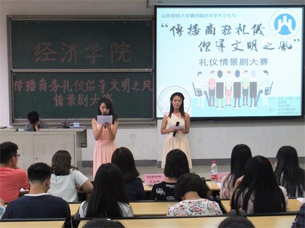 5月28日晚18:30,由校学生工作部(处)、校团委、经济学院共同举办的第四届经济学术文化节之“传播商务礼仪,倡导文明之风”商务礼仪情景剧大赛于圣井校区明德楼B1-110教室举行。经济学院2015级同学到场观看。