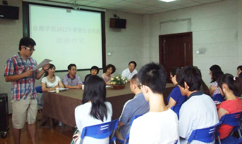 7月9日上午,金融学院举行2012年暑期社会实践启动仪式。金融学院党总支书记唐磊、校团委书记邓迎迎、金融学院相关负责人、老师及本次暑期社会实践部分学生代表参加了启动仪式,仪式由金融学院党总支副书记徐明春主持。