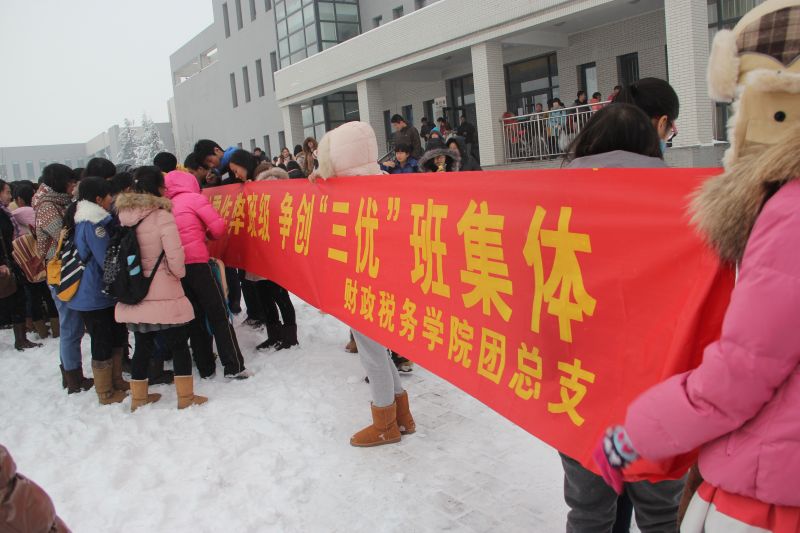12月21日财税学院在圣井校区敏行楼前发起“杜绝作弊,从我做起,争创零作弊班级,争创‘三优’班集体”的集体签名活动。学院各年级辅导员及时组织各班召开了“杜绝作弊,争创‘三优’班级”主题班会。