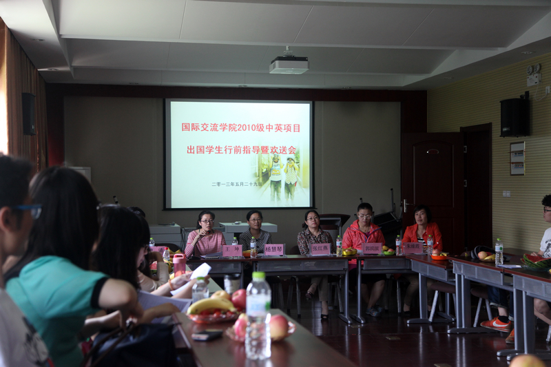 5月29日下午,国际交流学院召开2010级中英项目出国学生行前指导暨欢送会。院长杨慧琴教授,党总支副书记张红燕出席会议,会议还邀请了2007级优秀毕业生张若然、2009级毕业生杨扬同学为出国同学做经验介绍。