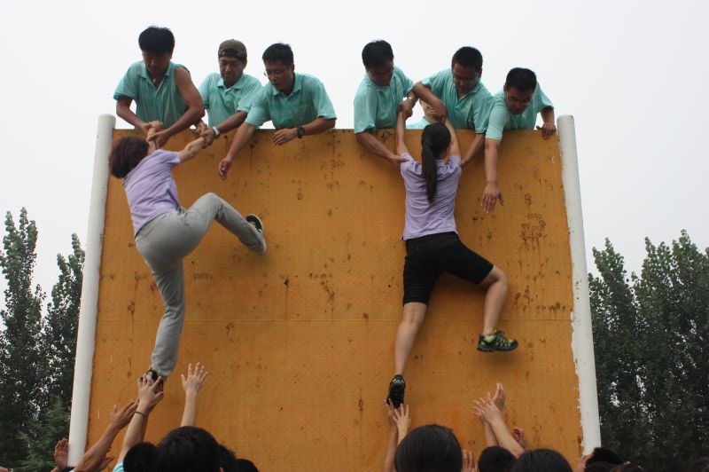 活动中,同学们通过随机组合分为4个小组,开展了徒手攀岩、穿越电网、高空单杠、信任背摔、击鼓颠球等近10个项目的拓展训练。其中,徒手攀岩、高空单杠等项目让同学们极大地挑战了自我,于攀爬中切身体会到了直面困难、迎难而上的勇气;穿越电网、信任背摔等项目使大家在密切配合中,体验到信任和协作的重要性;特别是此次活动的压轴戏——毕业墙,更是在细雨中将拓展活动推向了高潮,大家将团队力量和自我潜能都发挥到了极致,充分调动了集体智慧。
