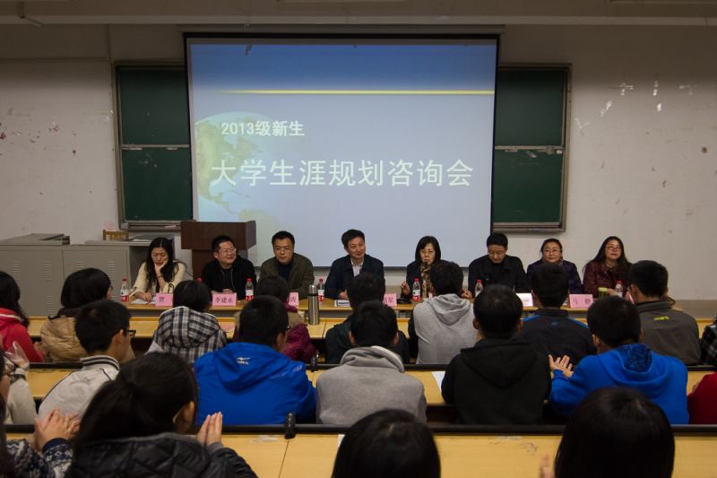 11月14日,财政税务学院2013级新生大学生涯规划咨询会在圣井校区举行。学院党总支书记潘明星、党总支副书记梅丽萍、兼职班主任马恩涛教授、汪崇金副教授、马静副教授、高凤勤副教授、贾莎博士以及2013级新生辅导员李建永参加活动。2013级全体新生参加了此次咨询会。