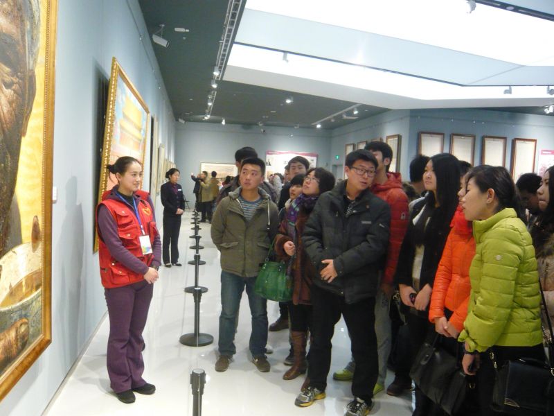 12月13日上午,艺术学院团总支书记兼学工办主任史萌、美术学(艺术品投资与鉴定)班主任杨宁带领美术学(艺术品投资与鉴定)、广告学专业的同学到山东省美术馆参观“艺彩纷呈——全国美术馆发展扶持计划成果展”。