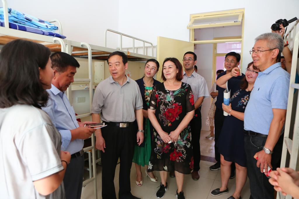 王邵军一行还深入到预科班学生宿舍,与新疆籍新生及家长进行亲切的交谈,并叮嘱相关部门负责人一定要努力解决他们学习上、生活上的困难,给他们提供更多温馨体贴的服务,用心用情做好少数民族学生教育培养管理工作。