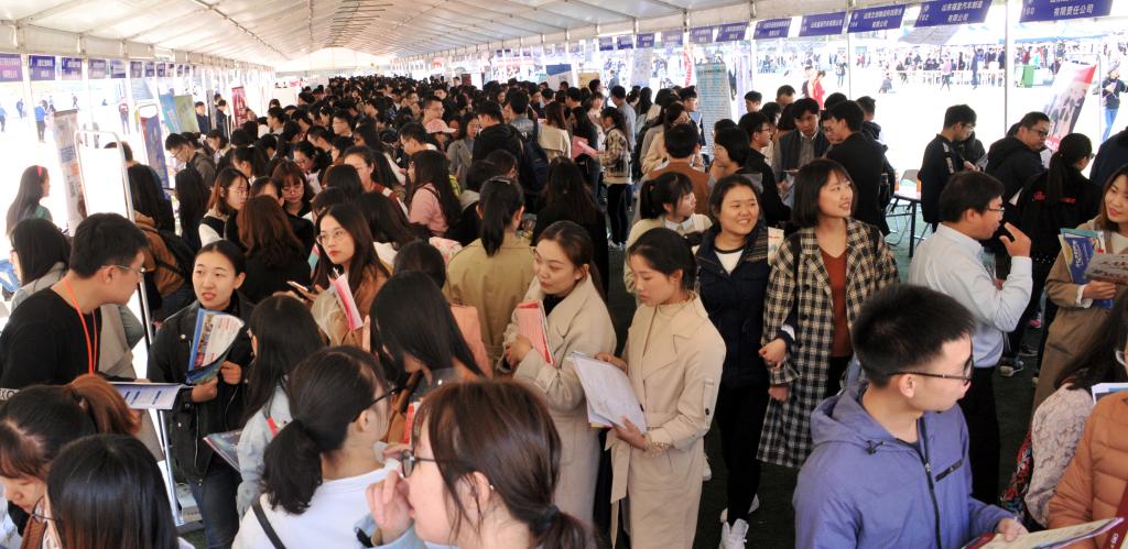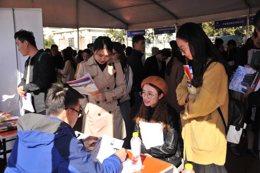 10月19日,财经类高校毕业生秋季校园招聘会在我校燕山校区举办。据初步统计,共有320家企业参会,提供职位数约12000个,兼职实习岗位500余个。截止至上午11时左右,来自全省各高校的近万名毕业生前来参加,约3000名毕业生与用人单位达成了初步就业意向。现场场面火爆,人山人海。