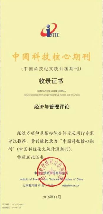 11月1日,中国科学技术信息研究所正式发布了中国科技论文统计结果暨《2018版中国科技论文统计源核心期刊目录》。我校主办的《经济与管理评论》再次入选“中国科技核心期刊”。这是继今年9月入选北大中文核心期刊之后,该刊获得的又一荣誉。