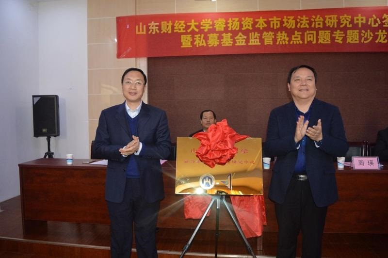 车滨、周瑛为睿扬资本市场法治研究中心揭牌。法学院和睿扬律师事务所签署《山东财经大学法学院与睿扬律师事务所联合设立资本市场法治研究中心的合作协议》。与会嘉宾向研究中心的研究员颁发聘书。