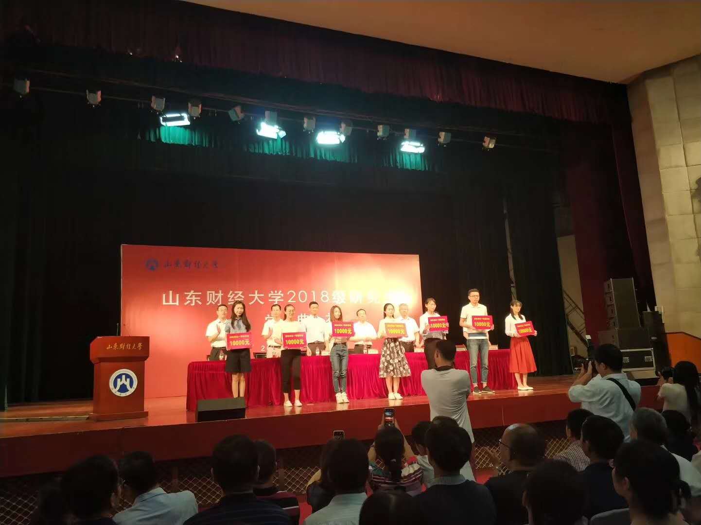 党委学生工作部部长王剑宣读了2018级研究生新生校长奖学金和新生学业奖学金获奖学生名单,与会领导和嘉宾分别为获奖代表颁奖;财政税务学院院长、博士生导师谢申祥教授和校友代表、中央财经大学财政税务学院副院长、博士生导师任强教授分别致辞;在校生代表工商管理学院硕士研究生季芮虹和新生代表统计学院博士研究生陈昊、金融学院硕士研究生张潇叶依次进行了发言。