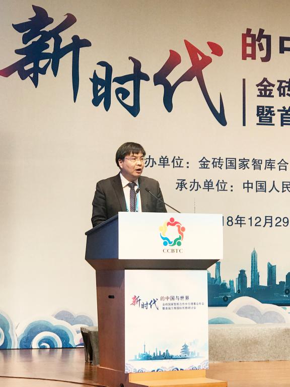 12月29日,由金砖国家智库合作中方理事会、中国人民大学主办的金砖国家智库合作中方理事会年会暨首届万寿国际形势研讨会在中国人民大学国学馆举行,会议主题为“新时代的中国与世界”。中共中央对外联络部副部长、金砖国家智库合作中方理事会理事长郭业洲发表讲话。副理事长、校长赵忠秀向大会致辞。国际交流与合作处处长王剑波参加年会。