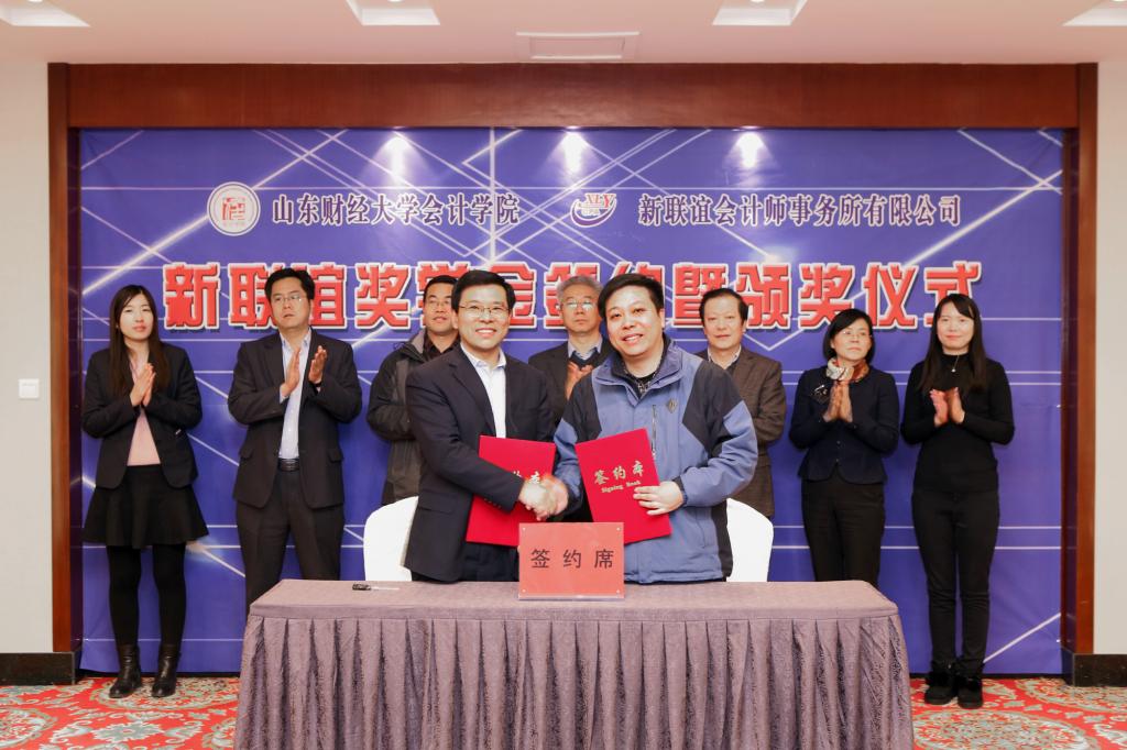 12月12日下午,我校与新联谊会计师事务所签约并在会计学院设立奖学金。副校长张新,1994级会计专业校友、新联谊会计师事务所执行总裁刘洪和出席并致词。新联谊会计师事务所人力资源部负责人、学校相关部门负责人、会计学院师生代表参加活动。会计学院党委书记张涛主持。