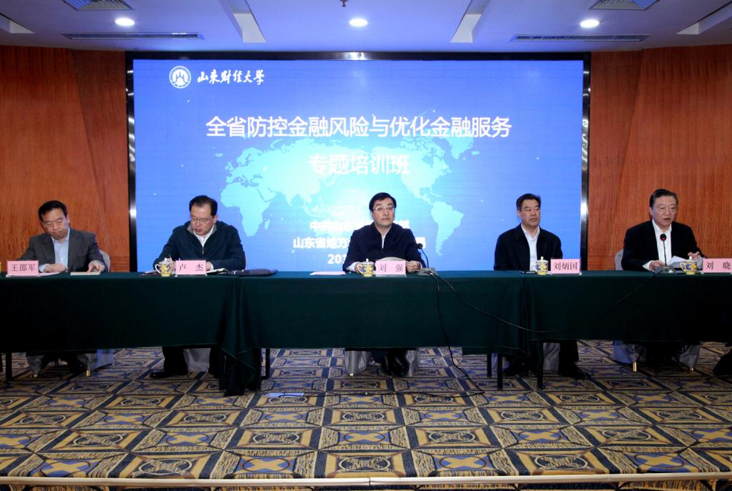 日前,由山东省委组织部、山东省地方金融监管局主办的全省防控金融风险与优化金融服务专题培训班在我校舜耕校区举办。山东省副省长刘强出席开班仪式并做动员讲话,省委组织部副部长兼省委非公有制经济组织和社会组织工委书记刘炳国、省政府副秘书长卢杰、我校党委书记王邵军出席开班仪式。