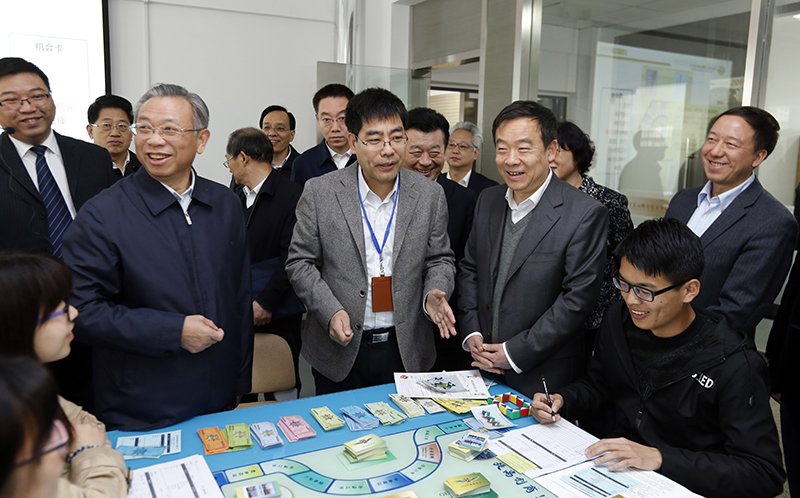 刘家义首先来到我校大学生创业园,详细了解创业平台建设情况,与大学生深入交谈,询问创业方向如何选择,一年收入达到多少,园区有什么优惠政策,希望他们不断开拓思路、创新方式,努力取得成功。在管理科学与工程学院,刘家义认真听取学院党的建设和思想政治工作情况汇报,深入教学实验中心,了解各实验课堂教学和科研情况。