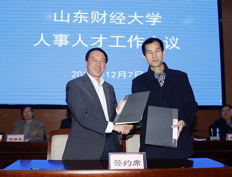 山东省“泰山学者”青年专家、学校人才支持计划入选教师代表谢申祥教授、金融学院院长曹廷求、管理科学与工程学院院长张新、计算机科学与技术学院院长尹义龙分别作典型发言。