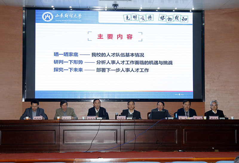 对做好下一步的人事人才工作,卓志提出三点要求。首先,要把握重点,强化措施,做好人才工作。一是进一步改进高层次人才引进工作,引进高层次人才是解决学校高端人才紧缺最现实、最直接的办法;二是培育青年学者,构建高层次人才后备力量成长体系;三是特别重视省级以上重点实验室、泰山学者岗位、研究基地等创新平台建设,加强学科人才团队培育。其次,要统筹规划,重点支持,加强教师职业能力建设。一是实施青年教师博士化计划,二是引导教师积极参加在职进修培训,三是强化教师创新创业能力建设。最后,要健全体制,优化机制,不断改善人才成长环境。一是建立教师分类管理制度;二是建立教师发展性考核评价体系;三是推进绩效工资改革,不断提升激励保障水平;四是完善管理人员和教学支撑人员发展机制,充分发挥各类人才创造性;五是优化行政管理体制。