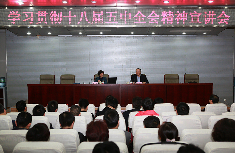 11月17日下午,学习十八届五中全会精神专题报告会在舜耕校区国际交流中心三楼文华堂举行。山东省学习贯彻党的十八届五中全会精神宣讲团成员、省委高校工委副书记黄琦作学习全会精神专题报告。校党委书记刘兴云主持报告会。学校领导卓志、张东超、聂培尧、綦好东、李明勇、吴彬出席报告会。全体处级干部、部分科级干部、学生代表聆听报告。
