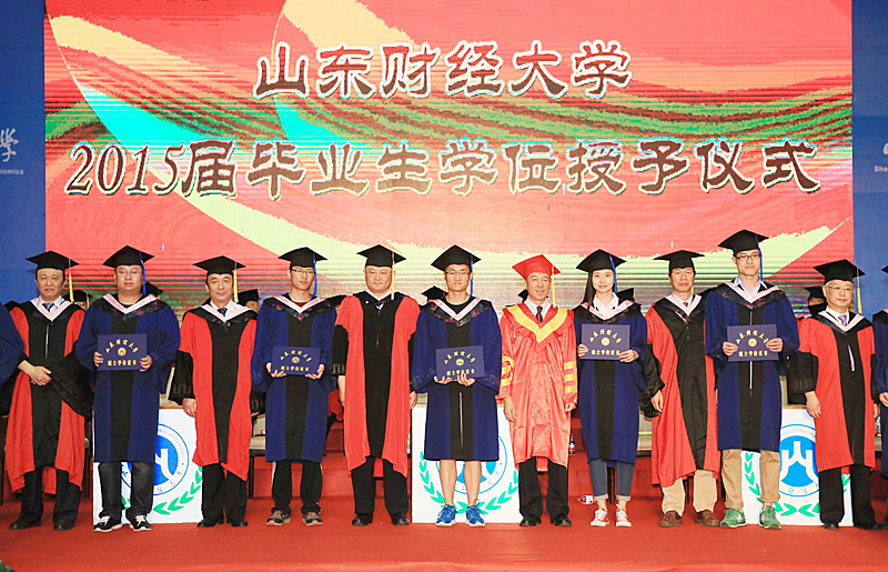 毕业典礼之后举行了隆重的2015届毕业生学位授予仪式。学位评定委员会副主席綦好东宣读了关于授予2015届毕业生学位的决定。全体校领导和教授委员会主任以及外籍教师代表为研究生和本科毕业生逐一颁发学位证书。