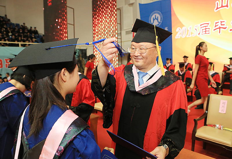 6月26日上午,学校在舜耕校区体育馆隆重举行2015年毕业典礼暨学位授予仪式。党委书记刘兴云、校长卓志、党委副书记张东超,副校长聂培尧、綦好东、胡文波、李明勇、吴彬出席典礼。学校各教学单位、党政职能部门、直属单位、教辅单位、科研单位主要负责人,教师代表、校友代表、2015届毕业生和毕业生家长代表参加典礼暨学位授予仪式。毕业典礼由刘兴云主持。