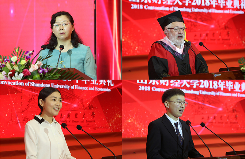 1993级计划统计专业校友、教育部“长江学者”特聘教授、上海财经大学会计学院院长李增泉,国际经贸学院教授、博士生导师方慧,加拿大达尔豪斯大学Barry Lesser教授分别作为校友代表、教师代表致辞,预祝毕业生在未来人生路上,认真走好每一步,做堂堂正正、自省自律的财大人,早日实现自己的追求和梦想。