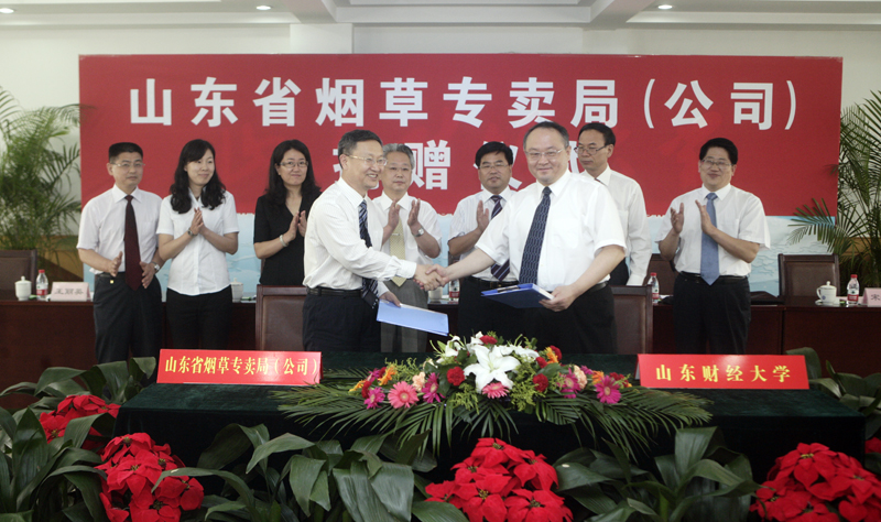 5月30日上午,山东省烟草专卖局(公司)向我校捐赠500万元仪式在燕山校区举行。校长刘兴云与山东省烟草专卖局(公司)副总经理刘云生共同签署捐赠协议,刘兴云代表学校接受捐赠并向山东省烟草专卖局(公司)颁发捐赠证书。仪式由副校长胡文波主持。