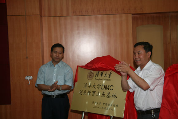 姚春生、赵延忱、孙承勇和宫淑瑰共同为“清华大学DMC创业教育山东基地”、“中国创业智库山东研究院”揭牌,并签署“清华大学DMC创业教育基地合作意向书”。