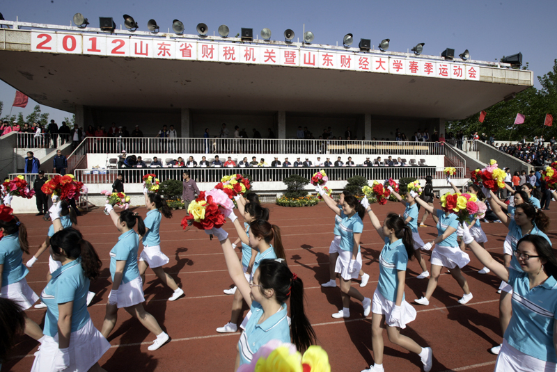 4月26日-27日,舜耕校区体育场阳光明媚、彩旗飘飘,2012年山东省财税机关暨山东财经大学春季运动会在这里隆重举行。这也是合并组建山东财经大学以来的第一次运动会,共有4575名运动员参加了476个项目的比赛,1人1次打破一项运动会记录,11个单位获得精神文明奖,11个单位获得大会组织奖。
