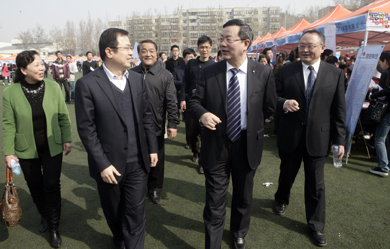 省政协副主席、省工商联主席、我校副校长王乃静,学校党委书记郝书辰、校长刘兴云、党委副书记、纪委书记牟思伦、副校长胡文波在招聘会现场与用人单位和应聘学生进行了交流。