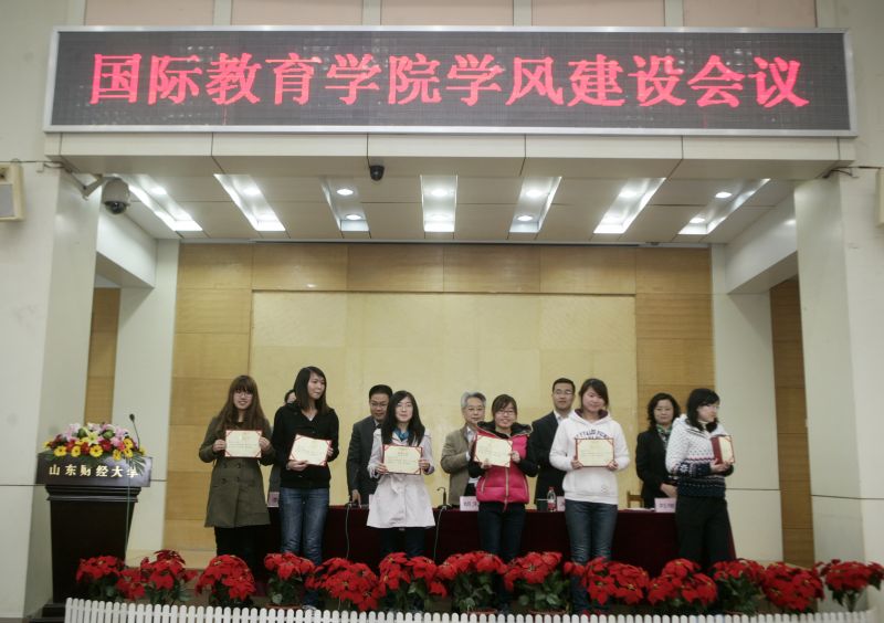 会议对获得国际教育学院2011年度“优良学风班”、“学习标兵”及“学习优秀个人”荣誉称号的5个先进集体和35名先进个人进行了表彰。对外汉语1001班姜文超同学作为“优秀学风班”及“学习标兵”代表作了发言,介绍了该班加强学风建设、创建先进班集体的做法和经验。