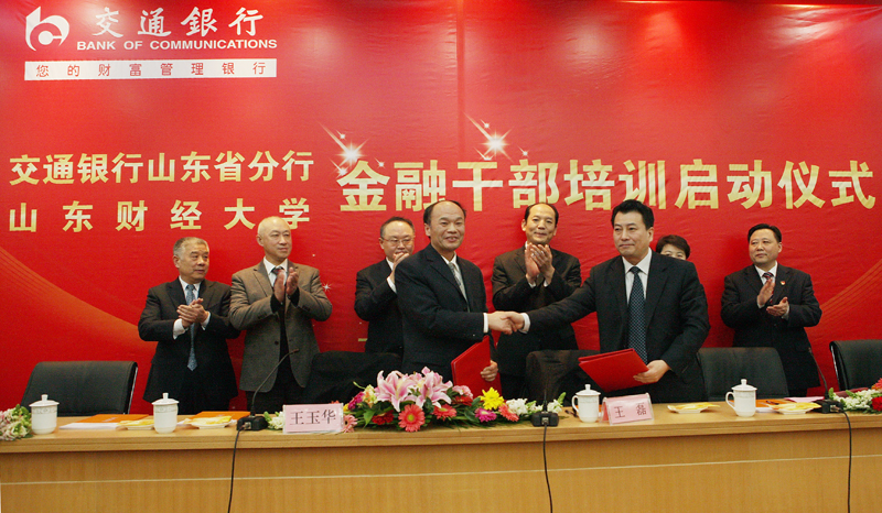 2月22日,学校与交通银行山东省分行签署协议,建立交通银行山东省分行金融干部培训基地。