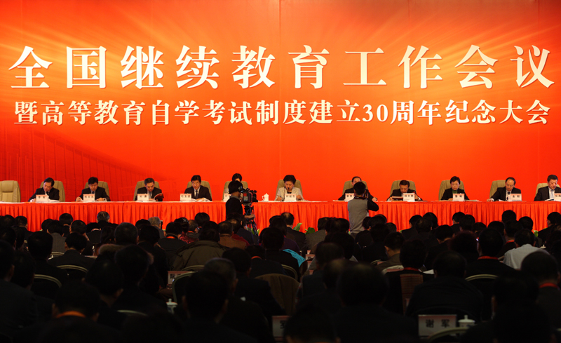 12月24-25日,全国继续教育工作会议暨高等教育自学考试制度建立30周年纪念大会在北京国家会议中心召开。中共中央政治局委员、国务委员刘延东出席会议并作重要讲话,会议由教育部部长袁贵仁主持。国务院有关部门负责人、有关省区市代表、部分行业组织和大型企业负责人、百所高校代表参加会议。