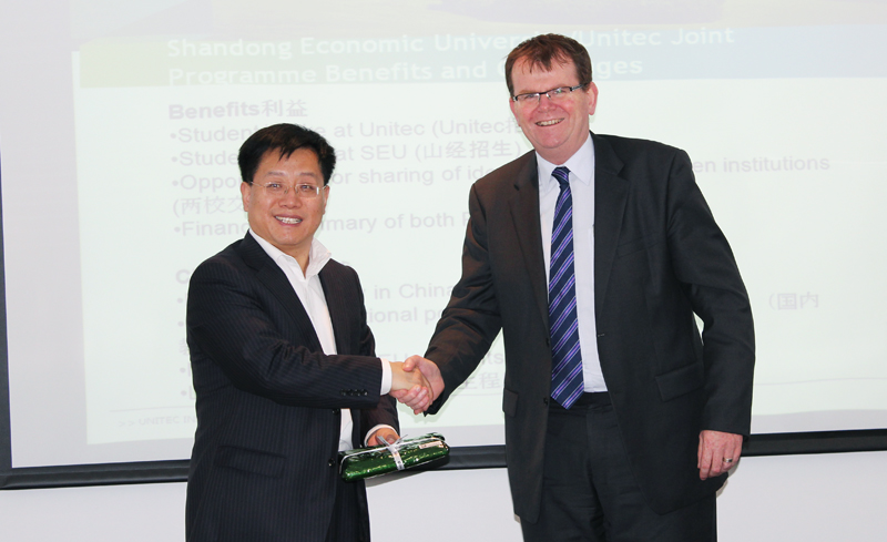新西兰Unitec理工学院与我校的合作项目涵盖本科和专科两个层次,目前已经有60多名学生到该校留学。校长Rick Ede会见了崔副校长一行。双方对合作办学、教师培训等项目进行了回顾,就目前合作办学面临的问题和挑战进行了沟通和探讨,对学费支付问题进行了梳理。双方还就选拔我校不同专业的学生赴该校访学一学期达成合作意向,并一致同意将由该校选派的、在我校任教的教师对申请访学的学生进行英语测试,双方约定将就学生访学项目的实施继续进行沟通。崔校长一行还亲切看望了我校赴Unitec理工学院留学生,勉励他们刻苦学习,做好山东财经大学(筹)与Unitec理工学院的交流使者。