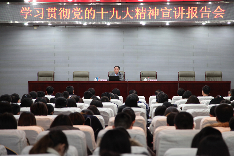 卓志联系国内与国际、高等教育与我校实际、财经类院校与金融保险学科发展,从党的十九大主题及主要成果、习近平新时代中国特色社会主义思想的背景及重大意义、习近平新时代中国特色社会主义思想的丰富内涵、落实习近平教育思想奋力开拓新时代高等教育与山财大新局面四个方面对十九大精神进行了有针对性的解读与剖析。