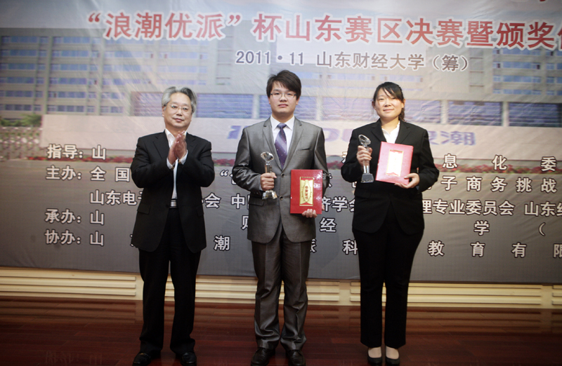 11月2日,第三届全国大学生“创新、创意、创业”电子商务挑战赛(简称“三创赛”)山东赛区选拔赛决赛在我校举行。我校共35支团队参赛并获得特等奖1项、一等奖4项、二等奖11项、三等奖5项。并与山东师范大学、济南大学、聊城大学、德州学院、泰山学院分得了11月26日赴成都西南财经大学参加第三届“三创赛”全国总决赛的15个名额。