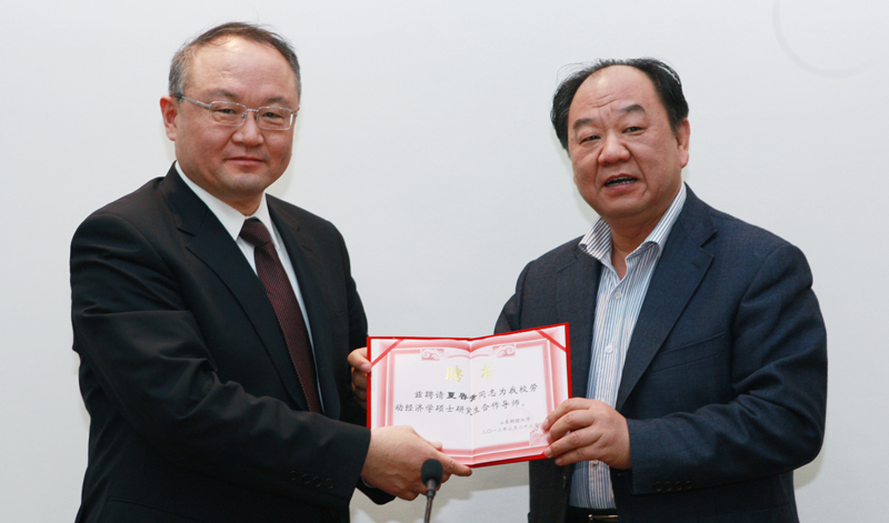 3月23日上午,学校硕士生新导师培训研讨会暨校外导师聘任仪式在舜耕校区举行。我校59名新聘校内硕士生导师、145名校外导师中的部分代表和各学院(中心)分管院长参加会议。校长刘兴云、副校长綦好东出席活动,刘兴云为山东省人力资源和社会保障厅副厅长夏鲁青、山东省社会科学院副院长袁红英、中国证券业监督管理委员会山东证监局副局长赵洪军等23位校外导师颁发了聘任证书。会议由研究生部主任周宗安主持。