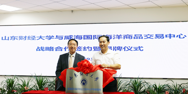 9月29日,学校与威海国际海洋商品交易中心战略合作签约暨产学研基地揭牌仪式在荣成市威海国际海洋商品交易中心交易大厅举行。校长卓志与威海国际海洋商品交易中心董事长时英勇签署战略合作协议,与荣成市副市长王刚共同为产学研基地揭牌。活动前,卓志与荣成市委书记江山进行了交流,荣成市经信局、金融办和学校校长办公室、科研处、金融学院相关负责人参加活动。