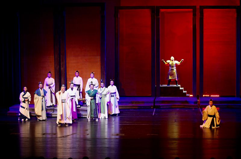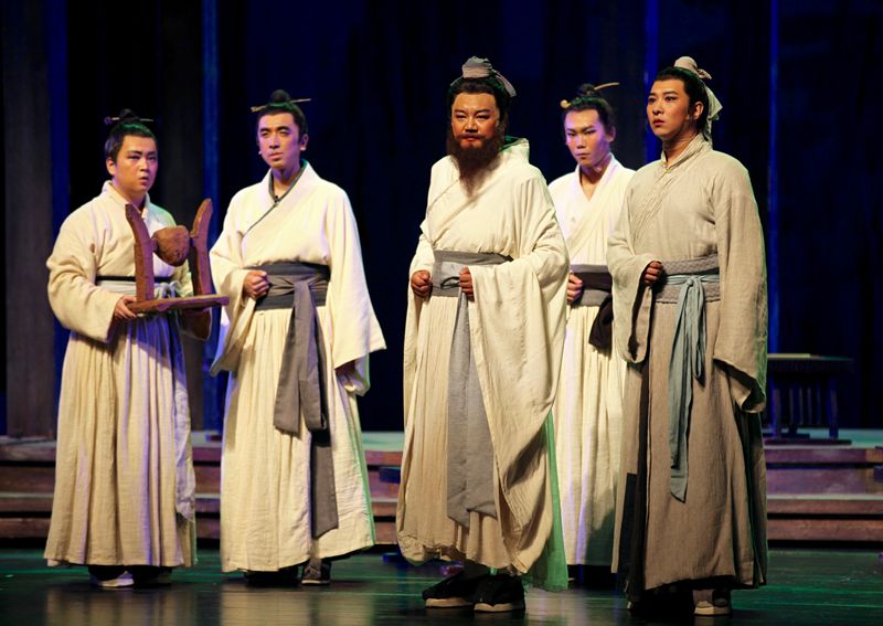 话剧《孔子》为山东省话剧院历时两年时间策划、创作的大型历史剧。该剧讲述了孔子从杏坛讲学到周游列国再到书写春秋的传奇一生,他历经三代鲁国君王,两次被迫告别妻儿远走他乡,漂泊十四年未得容身之地,最终也未能实现其理想,带着深深遗憾离开自己深爱的土地和人民。生动的艺术形象、美轮美奂的舞台灯光、经典的台词对白、多样化的表现形式……整场话剧让观众仿佛徜徉在春秋之中,充分感受“仁义礼智信”的民族精神和道德力量,现场不时响起热烈的掌声。