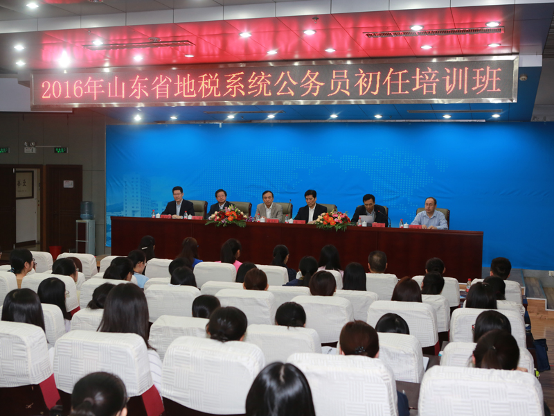 近日,2016年山东省地税系统公务员初任培训班开班仪式在舜耕校区文华堂举行。学校党委副书记张东超、山东省地税局副局长李功出席仪式并讲话。省地税局人事处、我校财政税务学院有关负责人参加仪式。