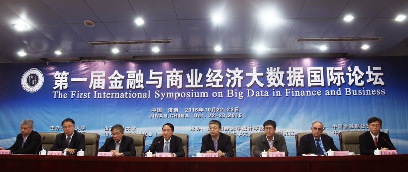 10月22日-10月23日,第一届“金融与商业经济大数据国际论坛”在我校举办。国家统计局副局长许宪春、我校校长卓志,山东大学、南开大学、山东省统计局和物价局相关领导及学界专家出席论坛。刚刚获得“求是杰出科学家”奖的中国科学院院士、山东大学教授彭实戈作“数据与不确定性”的主题报告,报告由我校副校长綦好东主持。