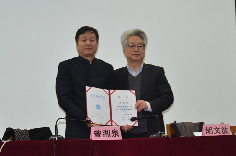 12月21日上午,中国人民大学教授、博士生导师、长江学者曾湘泉受聘为我校客座教授聘任仪式暨学术报告会在燕山校区三号报告厅举行,副校长胡文波出席仪式,学校人事处、人才工作办公室、工商管理学院有关负责人及师生代表参加仪式。