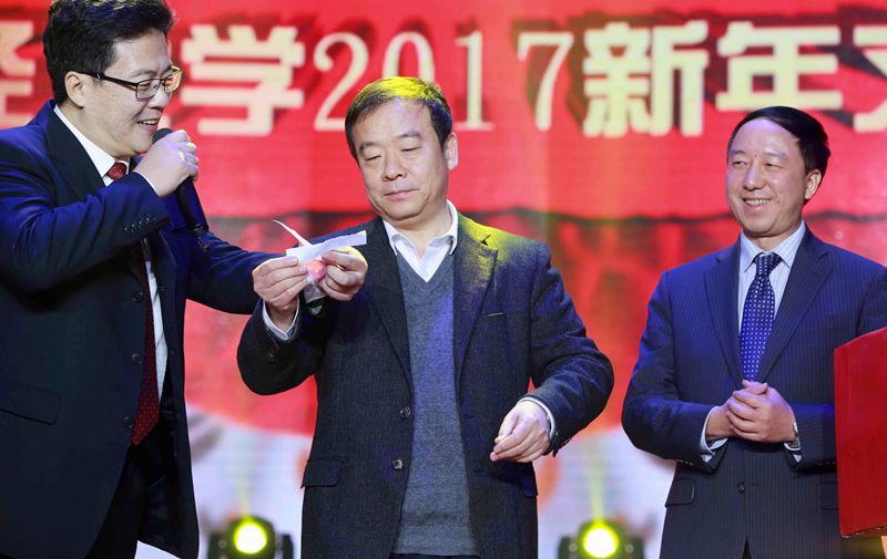 晚会亮点频现,创意十足。十位知名校友身披大红围巾一一上场,揭晓2016年学校十件大事。“双一流”建设成绩喜人,教学科研齐头并进,“双创”模式不断完善,校党委、行政成立八个项目组推进工作……观众们看得心潮澎湃,热血沸腾。